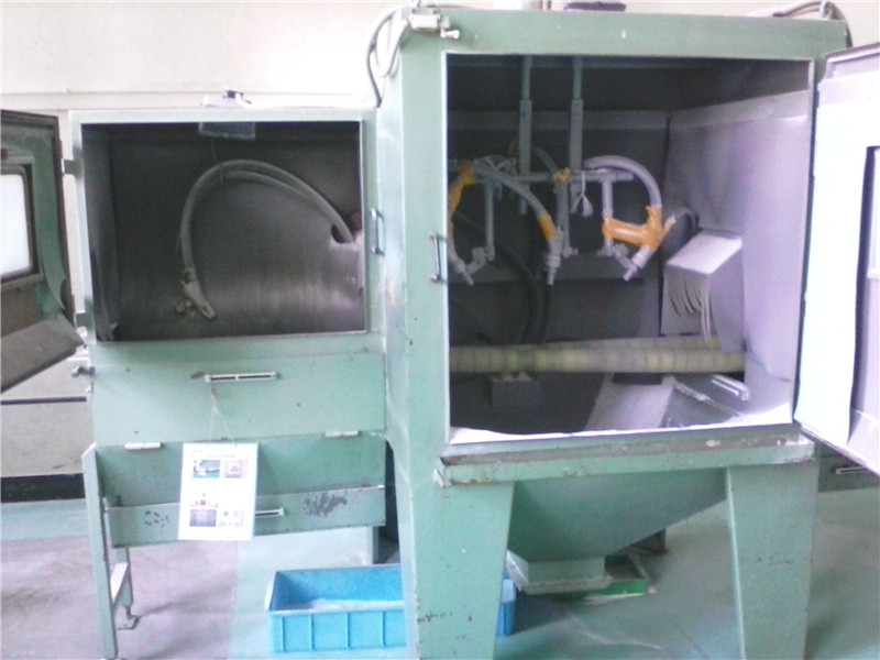 真空灭弧室瓷壳喷砂机介绍 真空灭弧室瓷壳喷砂机主要用途: 真空灭弧室瓷壳喷砂机主要用于真空灭弧室瓷壳表面和不锈钢表面的喷砂处理,使灭弧室在加工外绝缘保护层(软包、灌封)前通过喷砂能把灭弧室釉层等一切污物清除,并在瓷壳表面达到不同程度的粗糙度,大大提高灭弧室与绝缘保护层之间的结合力,使绝缘保护层粘接更牢固,质量更好。 真空灭弧室瓷壳喷砂机技术要求: 1、适用范围:真空灭弧室(以下简称工件)瓷壳、不锈钢表面喷砂。 2、适用磨料:石英砂(二氧化硅) 3、加工范围:直径≤φ150mm,高度≤500mm的圆柱体外表面。 4、工件运载方式:为保证表面喷砂效果一致性,工件自动转动,转动速度可调。 5、喷砂方式:喷枪位置可调或喷枪枪头喷射角度可调,喷枪移动速度可调。也可采取喷枪固定不动方式。 6、加工效率:可采用一次性单只加工或连续多只同时加工,每只加工时间≤3min。喷砂时间可调。 7、工件重量:≤15kg。 8、粉尘排放(符合国标):≤60mg/m3(GB16297-1996)。 9、噪音排放(符合国标):≤85db(GBJ87-1985)。 10、设备需求压缩空气: 压力≤0.6Mpa,喷枪压力由调压阀控制并且可调,并配有压力表显示。 11、工件装夹高度符合人体工学。 12、工作场地高度:3.5m(设备外形尺寸总高<3.2m)。 13、设备必须配备除尘系统(充分考虑磨料为石英砂的因素配备除尘器),并且除尘效果较好,检测指标符合国家标准。 14、磨料和粉尘能够通过筛网或旋风分离器等其它装置进行分离,分离出的磨料实现自动循环使用,粉尘通过除尘系统其中收集。 15、喷砂机按需配备装夹工件的工装夹具(工件非喷砂部位防护模具由我公司自备)。 16、集砂斗内设置有过滤网, 防止工件或者较大杂物掉入料舱内,堵塞喷枪而影响正常工作。 17、检修门或工件喷砂室外壳配有观察视窗,以便于观察喷砂加工过程,随时处理突发意外情况。 18、喷砂室、抽尘管、回砂管必须密封处理,防止喷砂时粉尘外溢流及砂料飞溅出来。 19、操作界面采用按钮式面板,方便操作工戴手套操作。 |