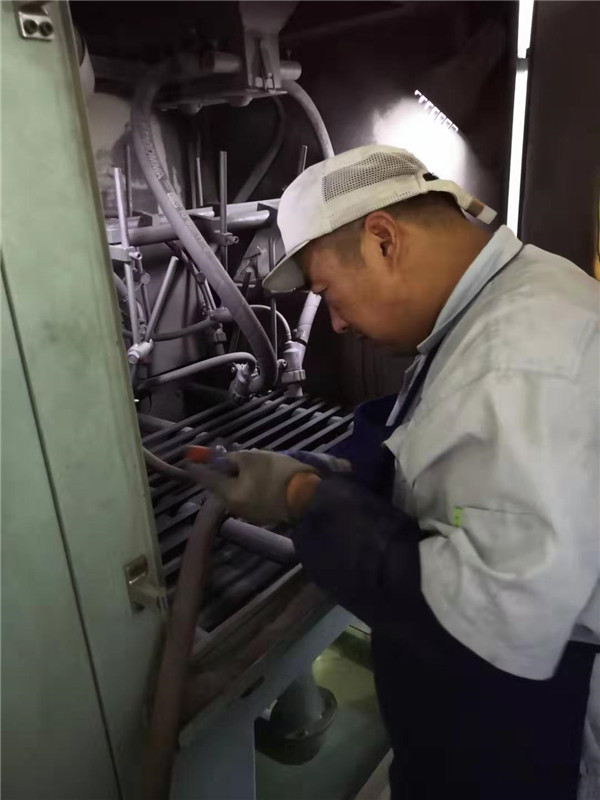 山东喷砂机公司帮助山东密封件密封圈公司对已经使用五年的自动喷砂机进行检修,维护,该客户在长期使用喷砂机的过程中,因为维修使用不当,造成机器出现各种故障,在吉川喷砂机工程师的帮助下,逐一找出问题点,并进行整改。