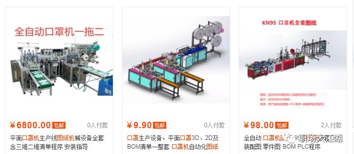 我到网上搜了一下,真的有卖口罩机图纸的,价格从几十元到几千元不等。这又刷新了我的三观了,尼玛居然还有这样做生意的。照着网上的图纸组装,还没有样机就敢开始接单,这样的口罩机能用吗?