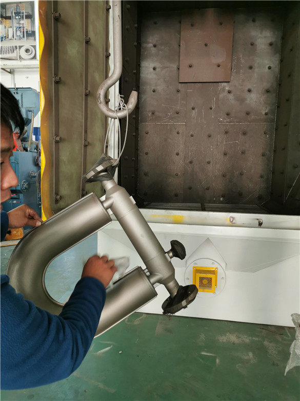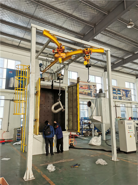 江苏喷砂机用户来我公司验收自动吊钩喷砂机抛丸机