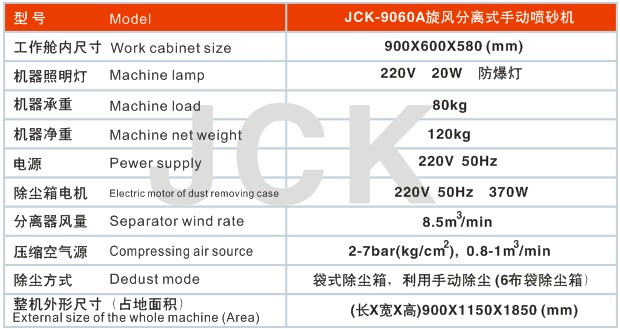 1、 该机采用旋风分离自动回收砂料,适合30#-180#砂料的使用;