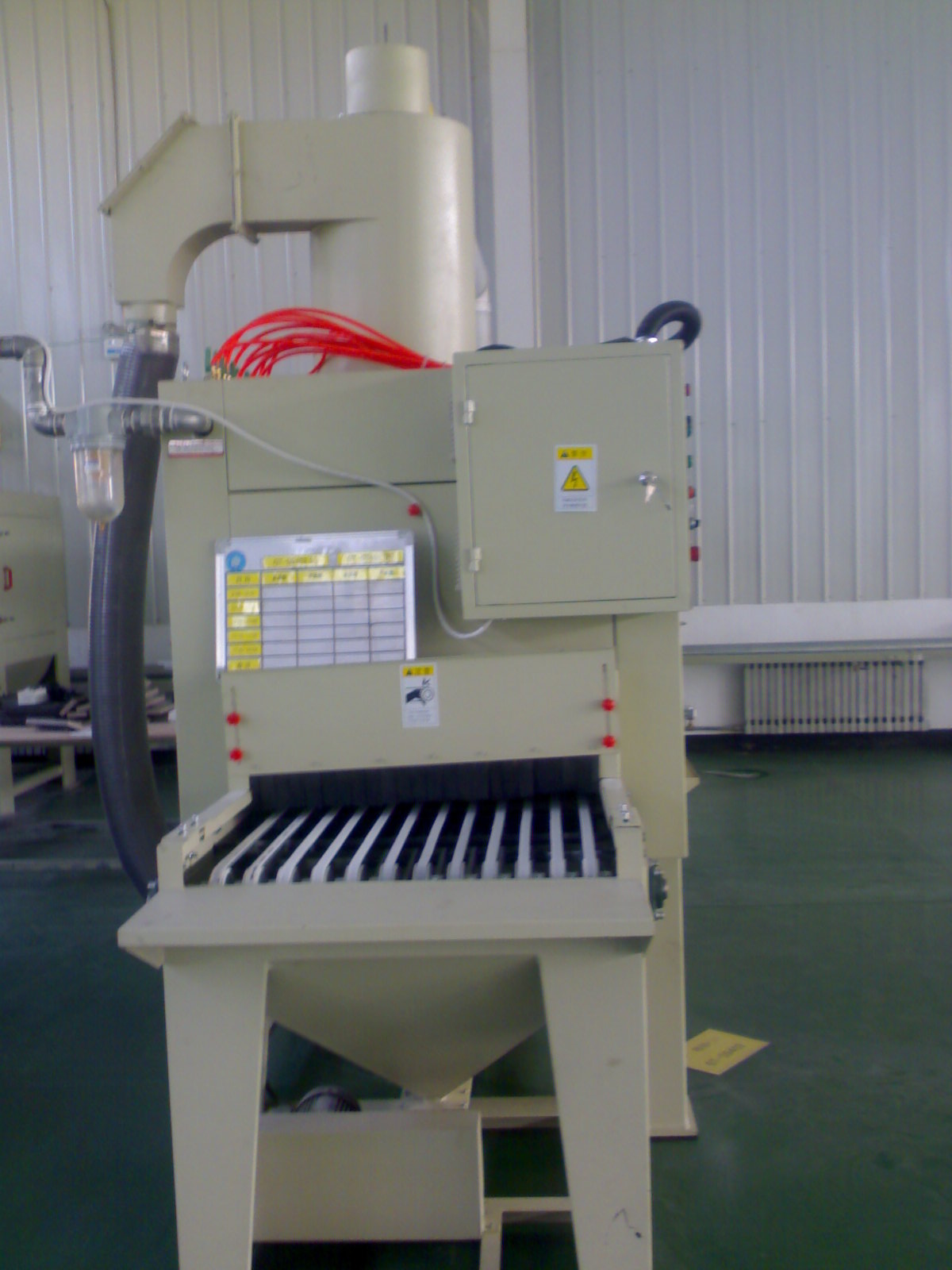 1、采用三角皮带输送工件,不会积砂,皮带速度配合喷砂工艺要求可实现变频调速;